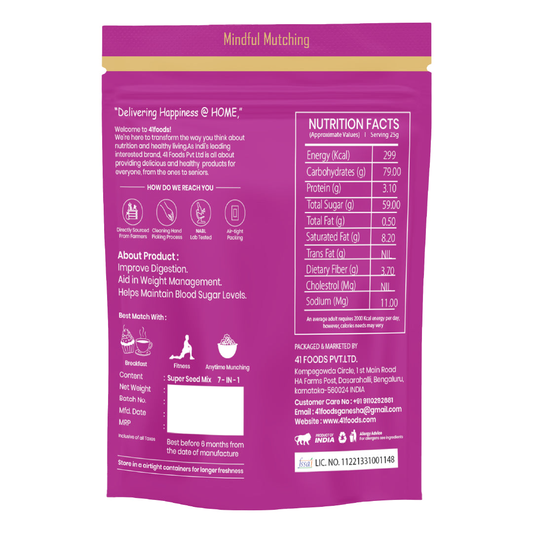41Foods - Your Seeds Mix for Eating -True Elements 7 - Edible Seeds Super Seeds in 1 Mix - | Healthy | Diet Snacks | 100% Natural and Roasted - Pumpkin, Watermelon, Sunflower, Flax, Chia, Muskmelon & Cucumber (Copy)