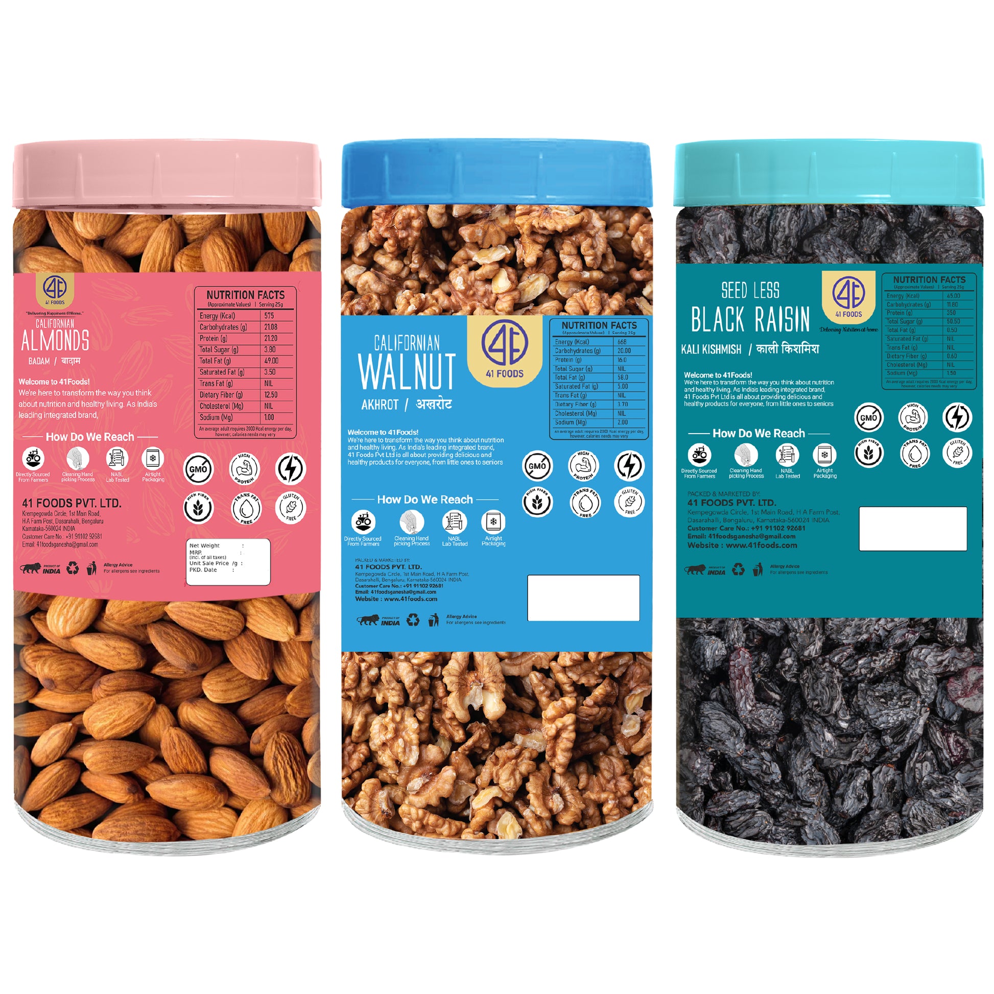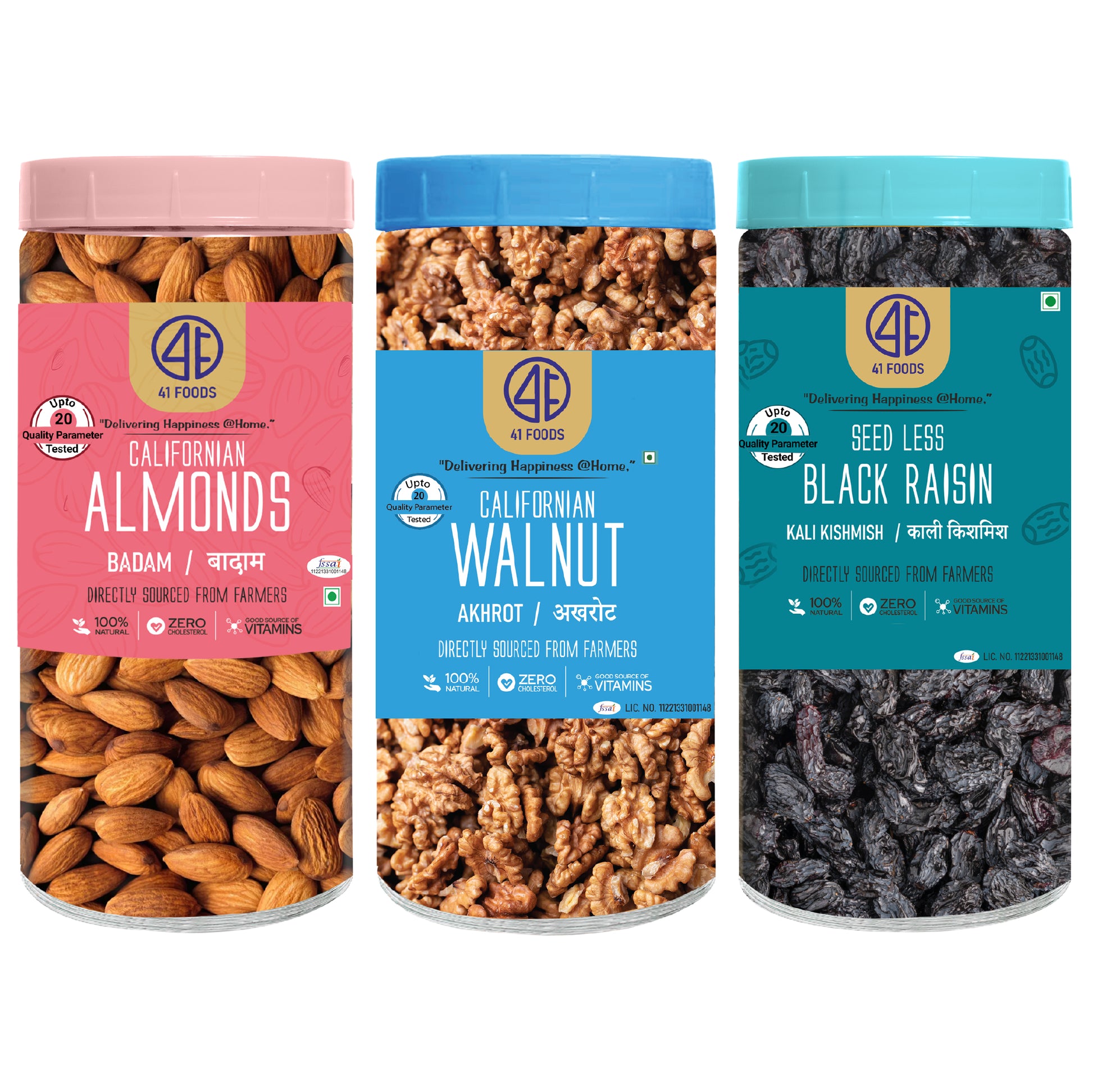 41 Foods 100 % Premium Healthy Dry Fruits Combo of Almond, Walnut, Black Raisins - Combo