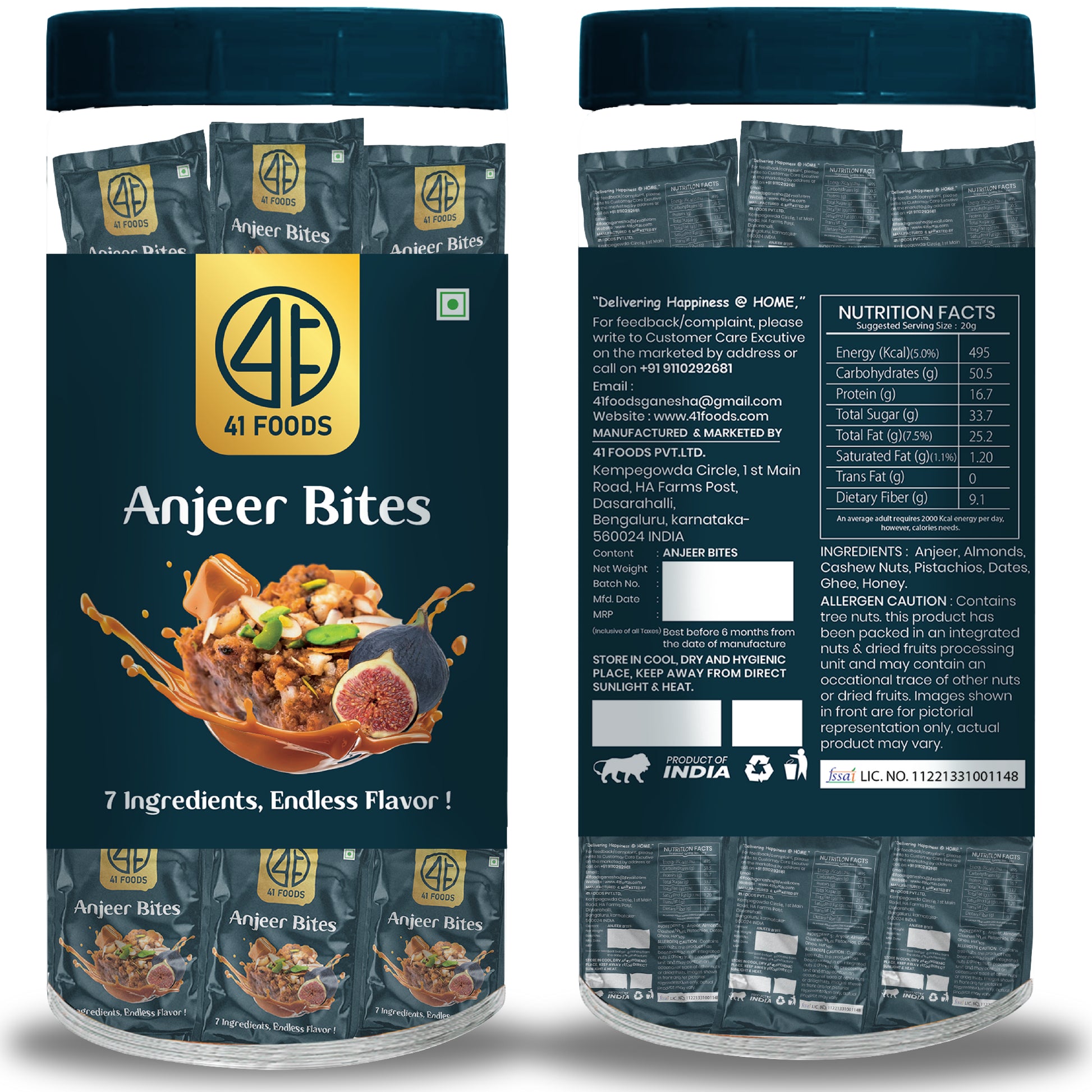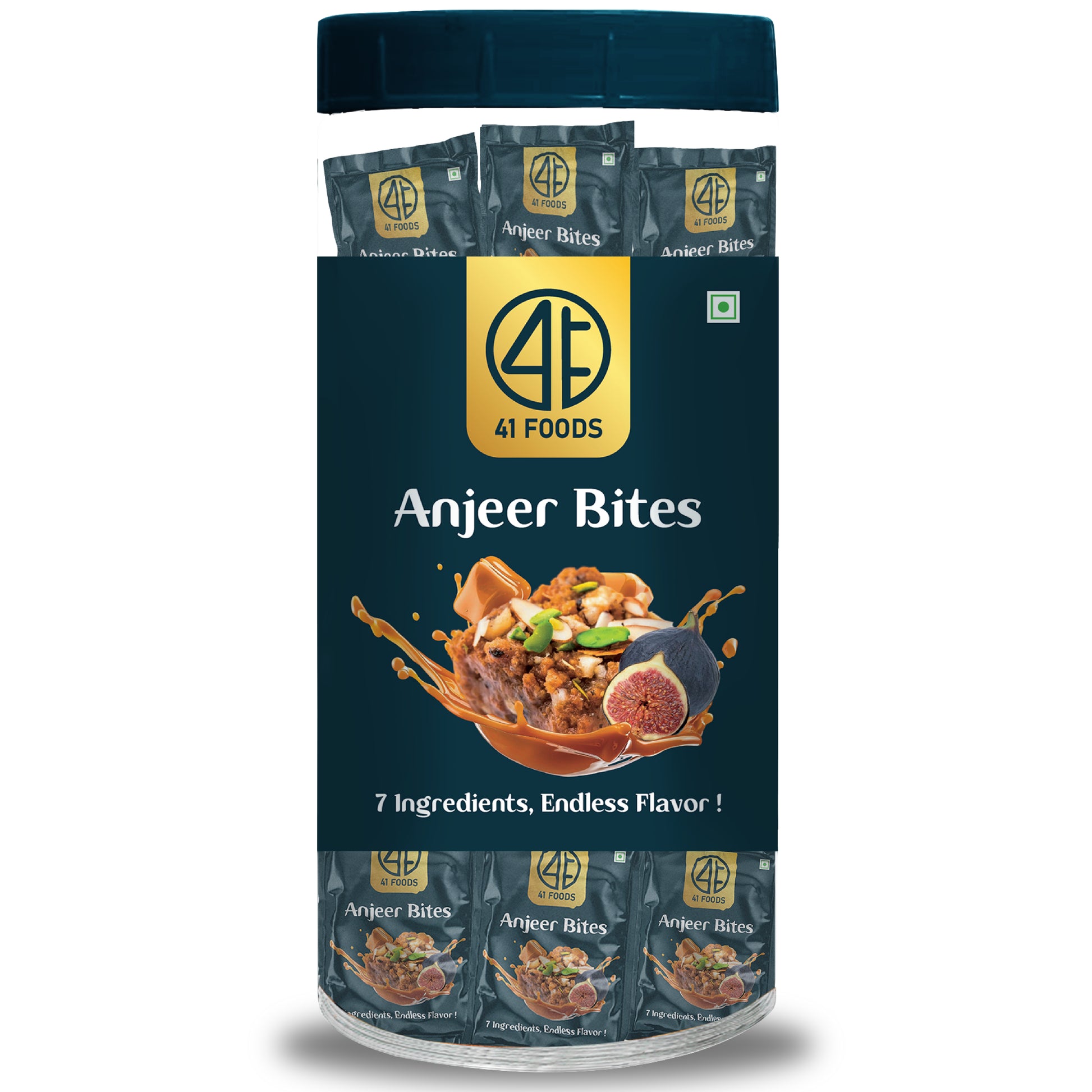 - Benefits: Anjeer bites have an excellent nutrition profile, since it contain dried nuts, their calorie content is higher than most fresh fruit, they have been consistently linked to a lower risk of disease such as stroke and heart diseases, high in healthy fats, protein and fiber, and also good for brain health.