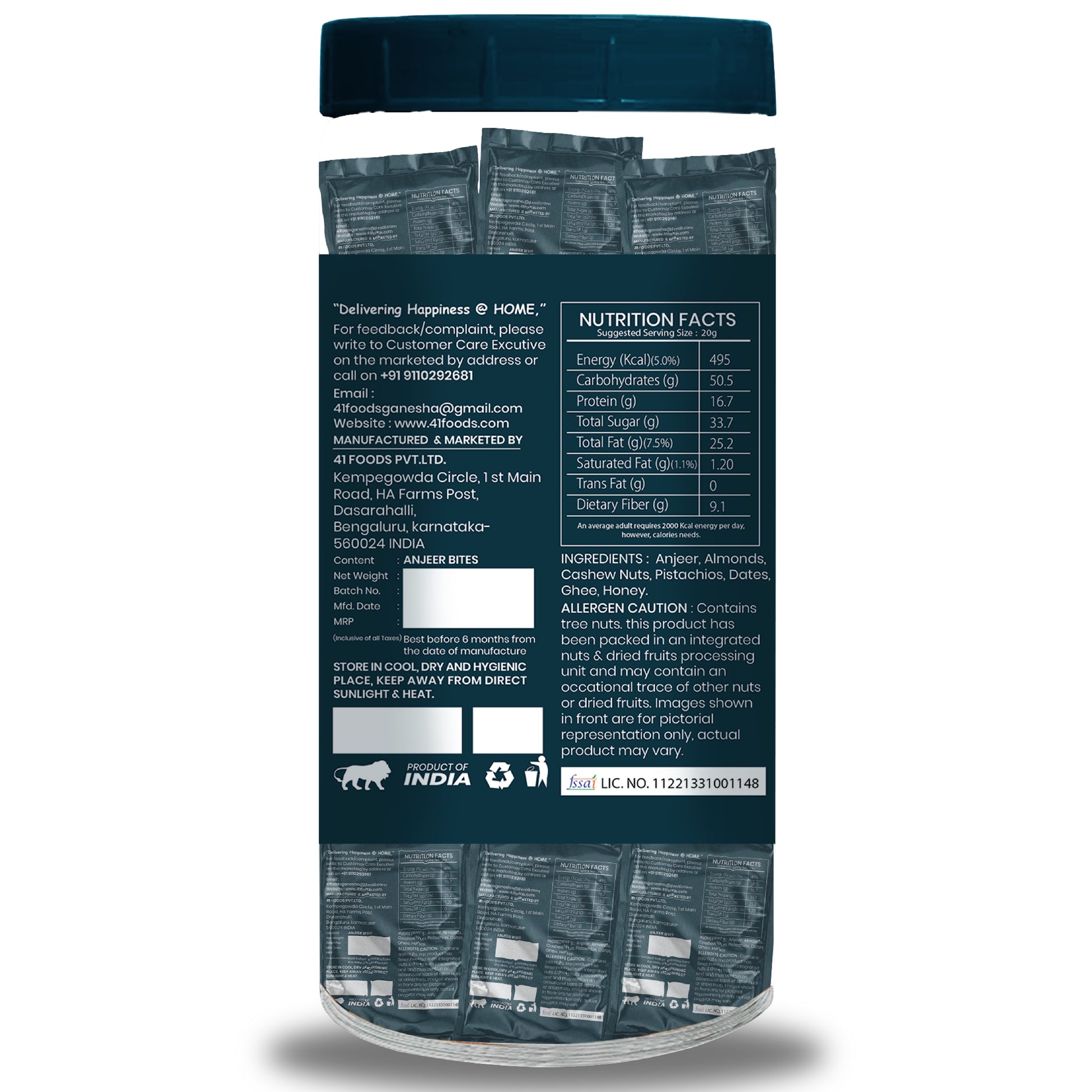 41 Foods 100% Premium Anjeer I Anjeer Bites Made with Anjeer, Pista, Cashews, Almonds, Honey and Pure Ghee I Dry Fruits & Nuts, Healthy Snacks, Sweets, Gluten Free, No Added Sugar.