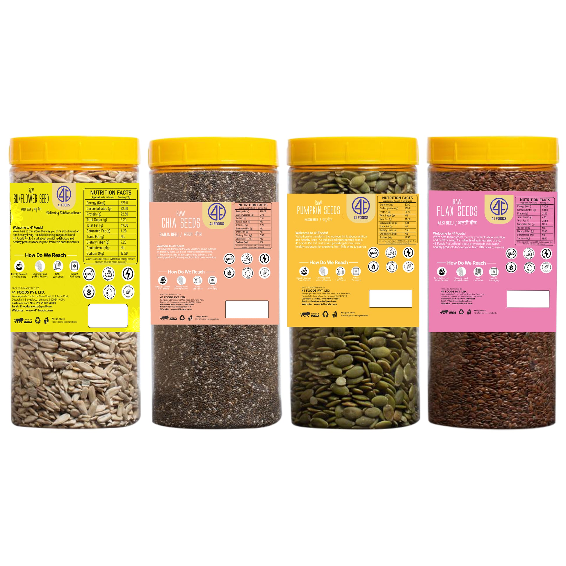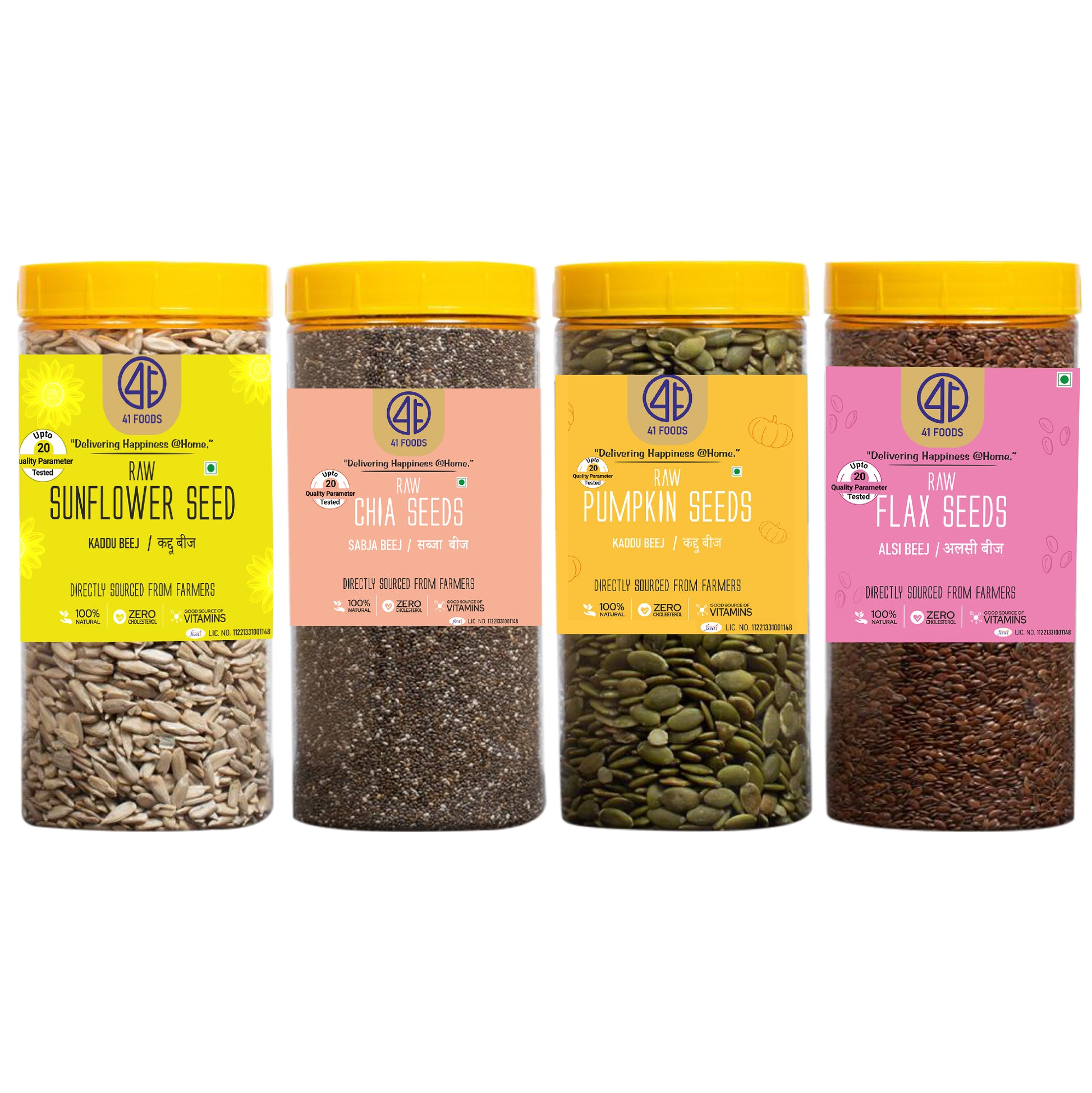 41Foods Energy Chia Seeds I Flax Seeds I Sunflower Seeds I Pumpkin Seeds | Seeds for Eating | Diet Snacks Combo