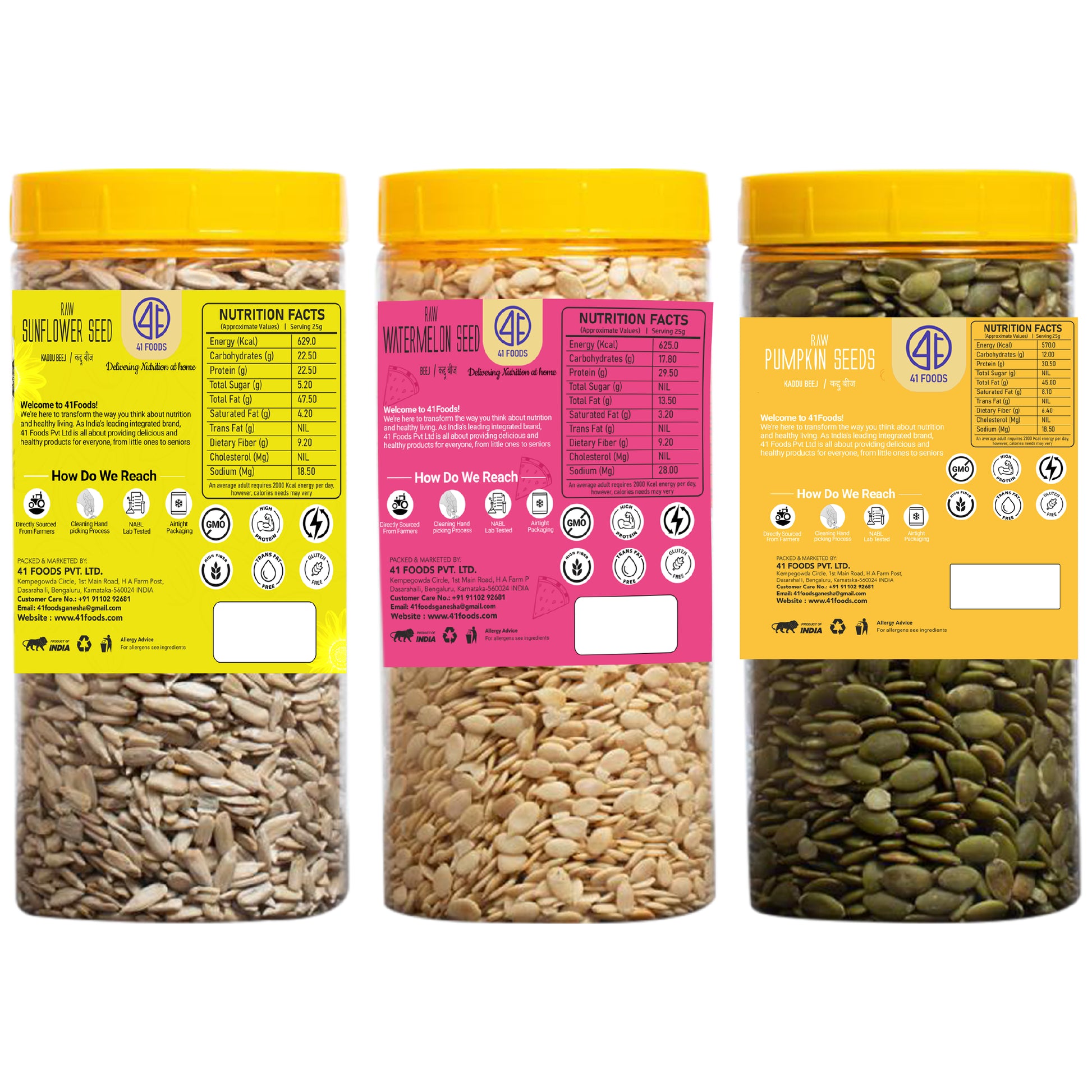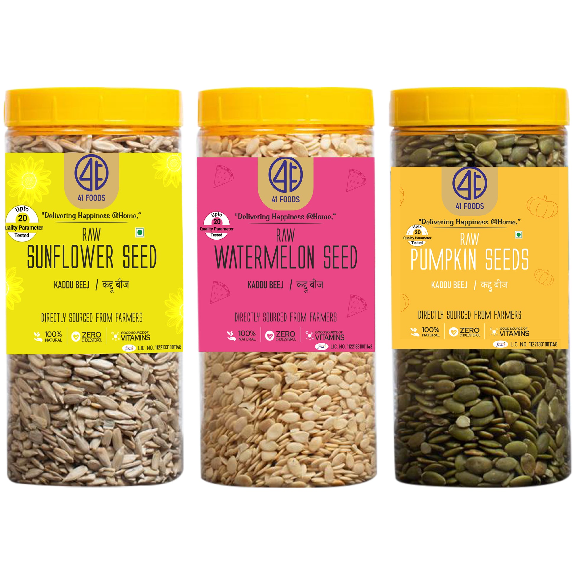 41 Foods - Combo Nature Prime Raw Seeds for Eating Combo Pack - Pumpkin Seeds, Watermelon Seeds, Sunflower Seeds - Pack of 3 - Jar Pack